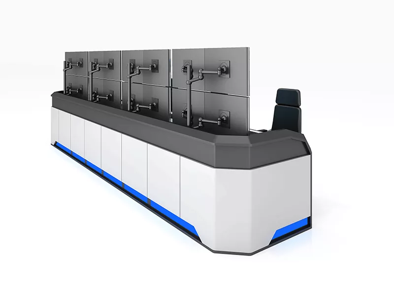 Het consolesysteem is speciaal gebouwd voor 110 commandohallen, bewakingscentra voor de openbare veiligheid en commandokamers voor noodgevallen, en ondersteunt high-density monitoring op meerdere schermen, communicatieterminals en gegevensverwerkingsapparatuur in een veilige en overzichtelijke lay-out.