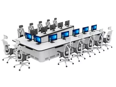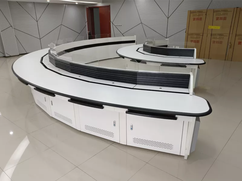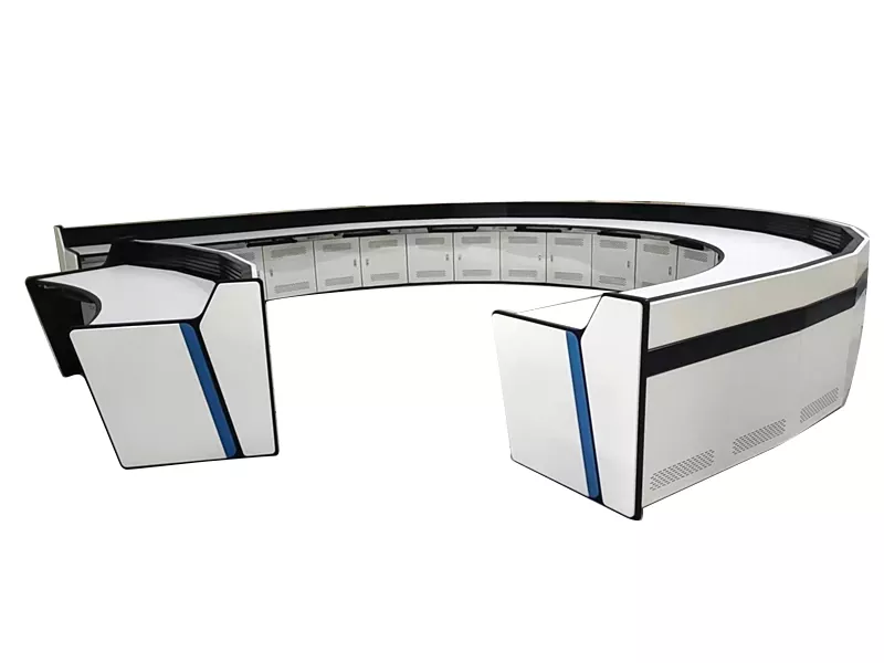 De Temei Rui U-vormige monitoringconsole is ontworpen en vervaardigd door een professionele fabrikant en fabriek van monitoringconsoles in China. Het maakt gebruik van een innovatieve holle U-vormige structuur met dubbele cantilever, die de visuele en ruimtelijke beperkingen van traditionele gesloten consoles doorbreekt en het commandocentrum een onbelemmerd groothoekbewakingsveld biedt.
